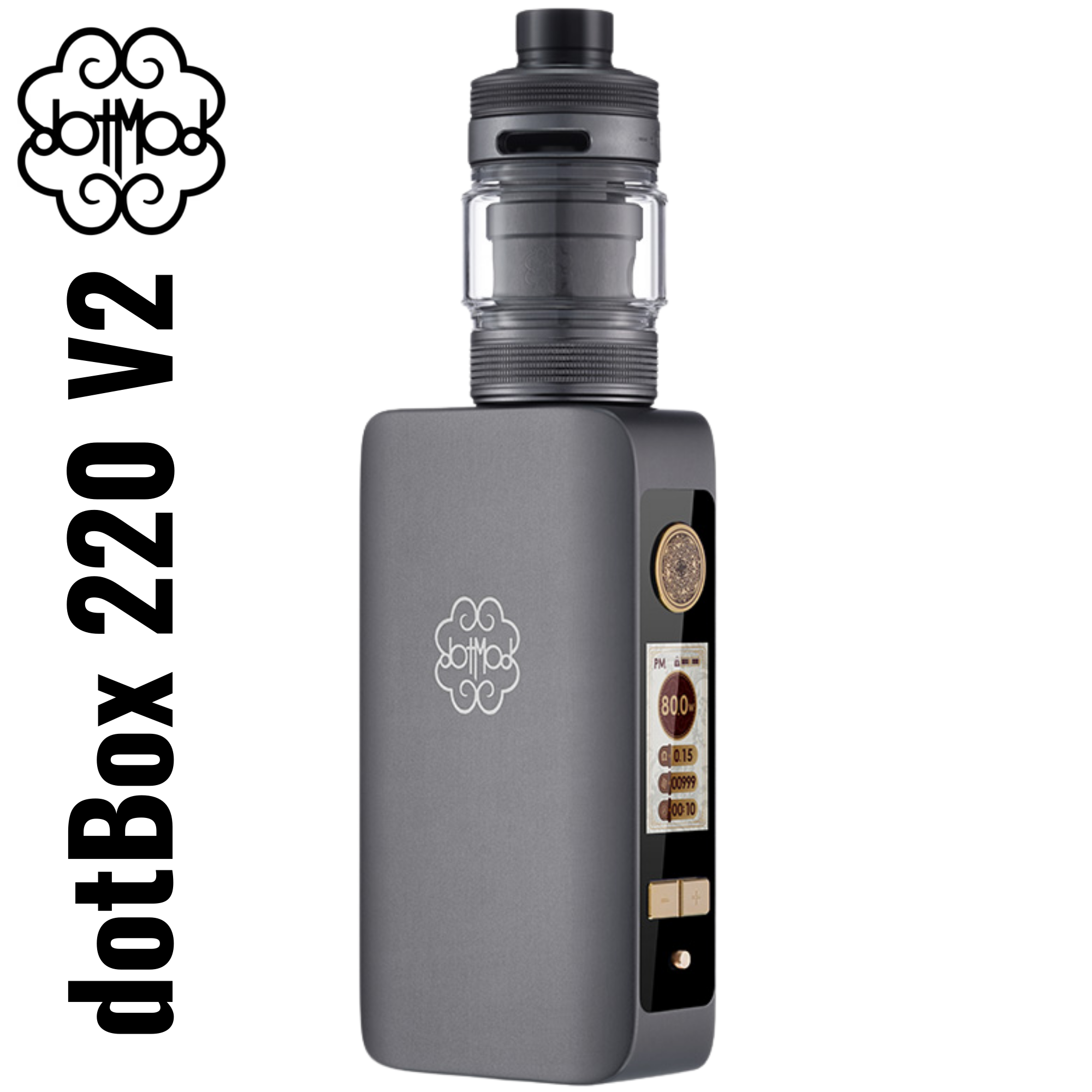 El kit de vapeo dotMod dotBox 220 V2 es un kit subohm de doble batería de alta gama diseñado para vapeadores que buscan gran potencia, un estilo refinado y una experiencia totalmente personalizada.