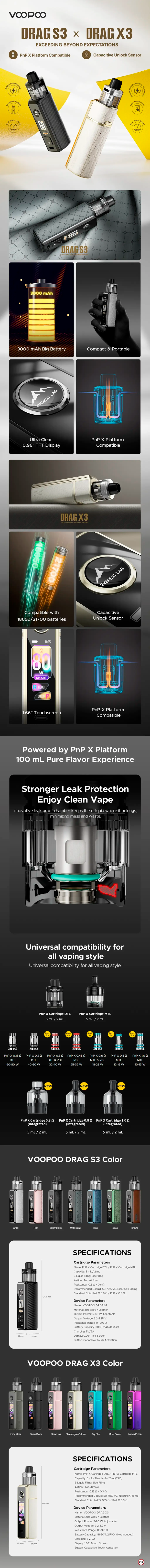 El Voopoo Drag X3 combina potencia, autonomía, y un diseño táctil intuitivo en un formato compacto y sofisticado. Ideal tanto para principiantes que buscan facilidad de uso como para expertos que desean control total sobre su experiencia de vapeo.