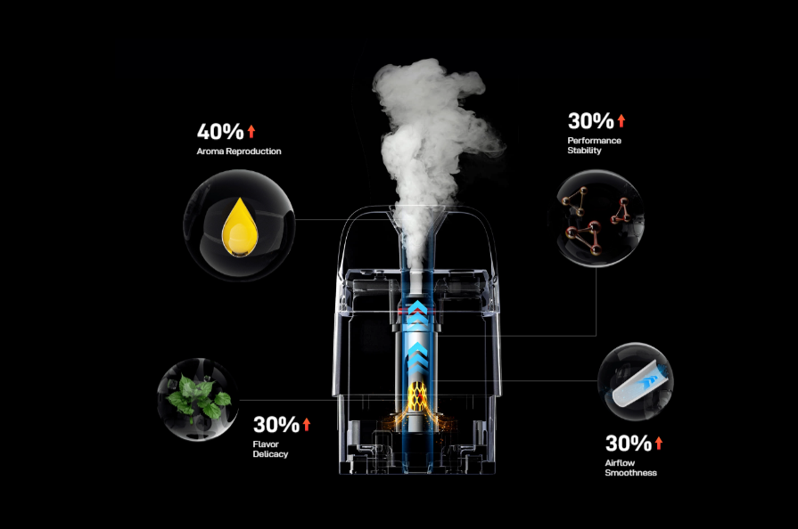 Nueva malla Hive Mesh y diseño mejorado de la chimenea para un 40% más de reproducción aromática y un 30% más de estabilidad y suavidad en la calada.