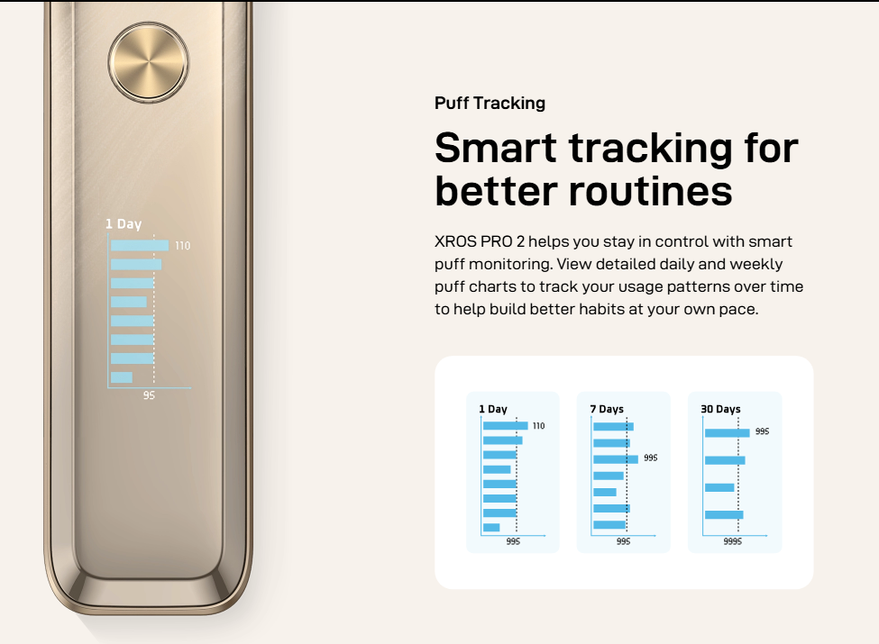 Seguimiento inteligente de caladas diarias y semanales para mayor control.